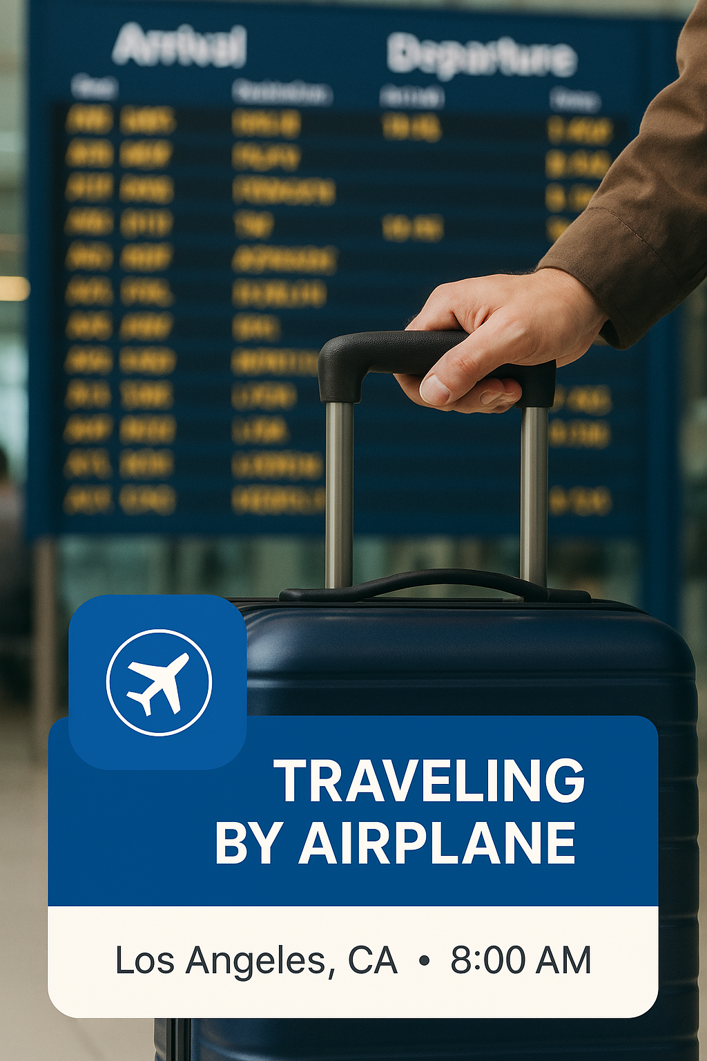 Travel-Themed Image Depicting Airport Journey with Travelers