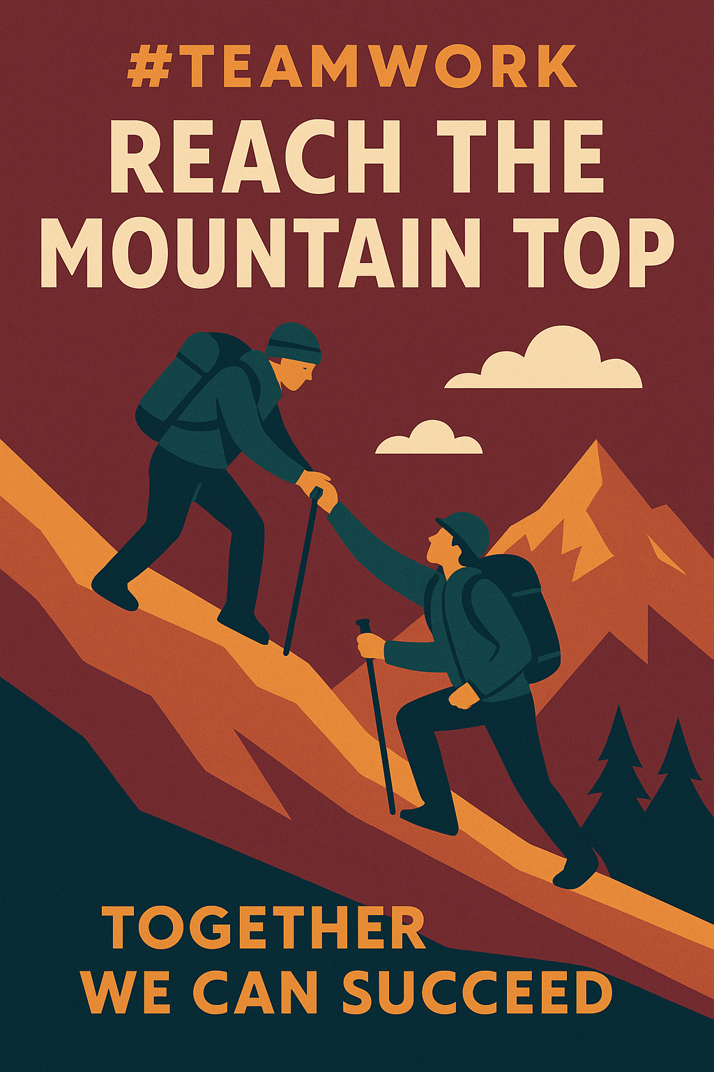 /Collection: /by davooda/Type: PNG/A vibrant and inspiring illustration depicting two climbers assisting each other on a mountain, symbolizing teamwork and collaboration. Ideal for motivational content or team-building events.