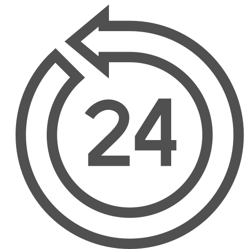 outline simple icon: 24 hours, around the clock, clock, daily cycle, full day