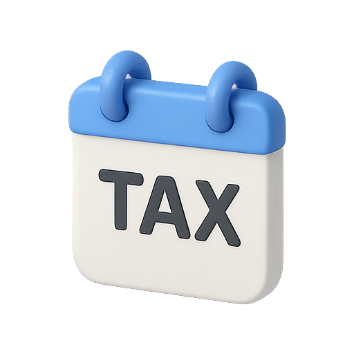 A stylized 3D calendar icon featuring the word 'TAX' prominently displayed. This design is ideal for financial apps or tax-related content, showcasing a clean and modern aesthetic.