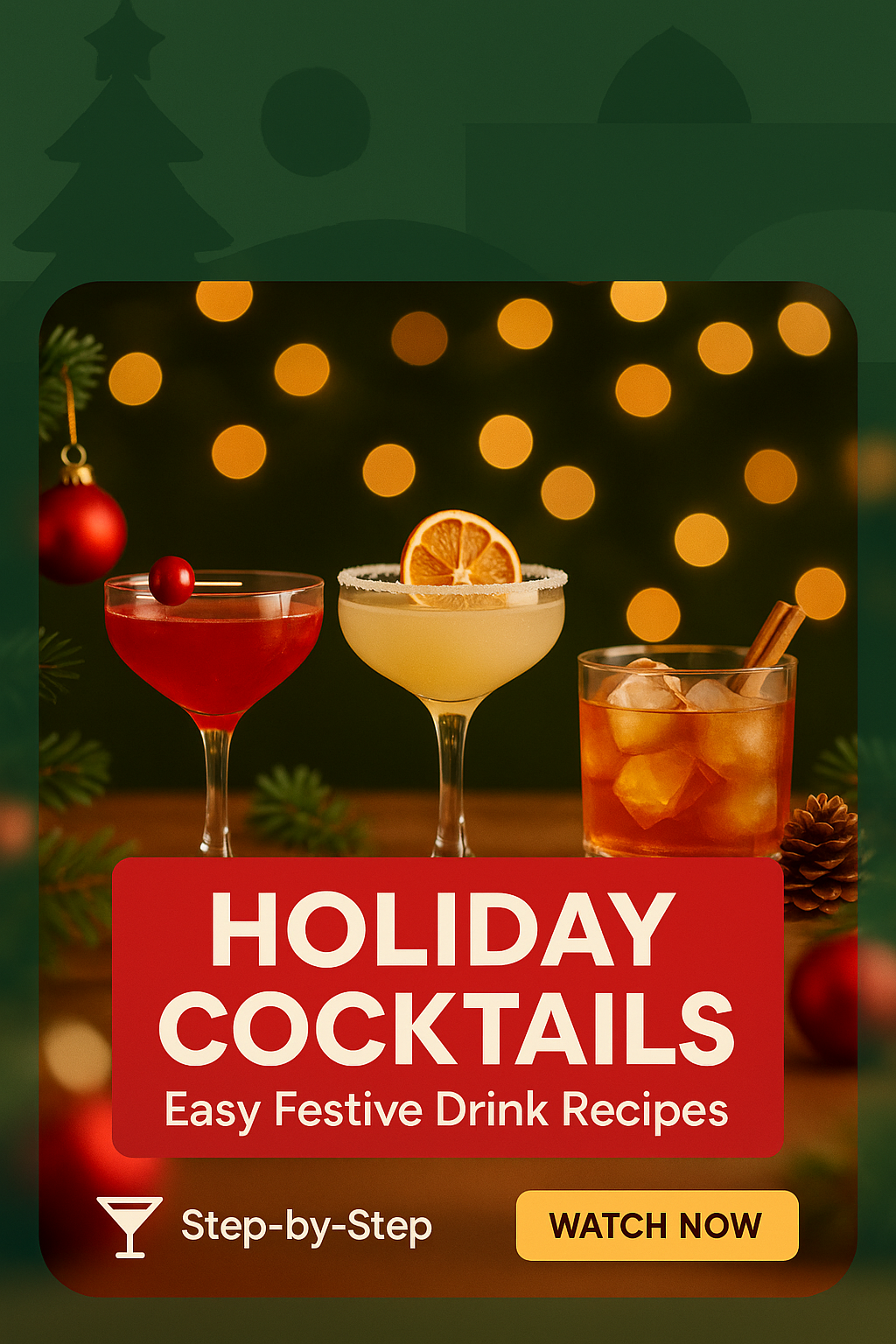 Festive Holiday Cocktails Recipe Banner with Decorative Elements