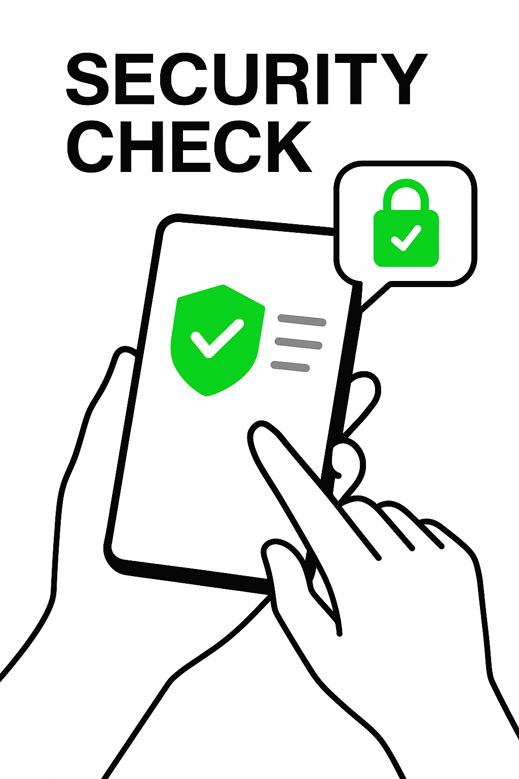/Collection: /by davooda/Type: PNG/Minimalist illustration depicting a mobile device engaging in a security check, ideal for cybersecurity awareness and tech-related content. The design features a clean, modern aesthetic.