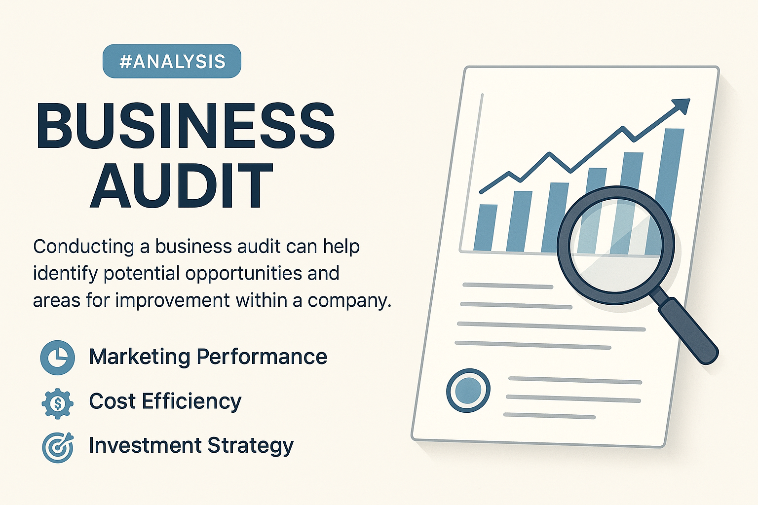 /Collection: /by davooda/Type: PNG/Informative infographic illustrating the concept of a business audit, highlighting key performance indicators and improvement areas with clean, modern design elements suitable for business presentations.