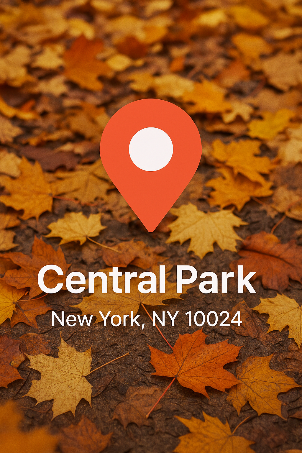 /Collection: /by davooda/Type: PNG/A visually appealing image featuring a location pin over a backdrop of autumn leaves, representing Central Park in New York. Ideal for travel guides or seasonal promotions.