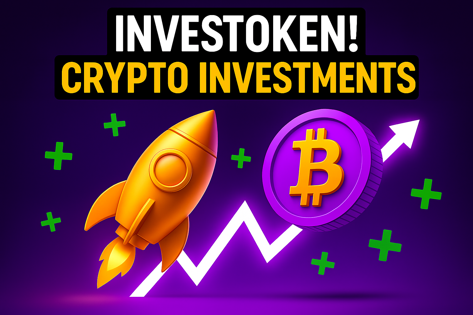 Vibrant Crypto Investment Graphic with Rocket and Bitcoin Symbol