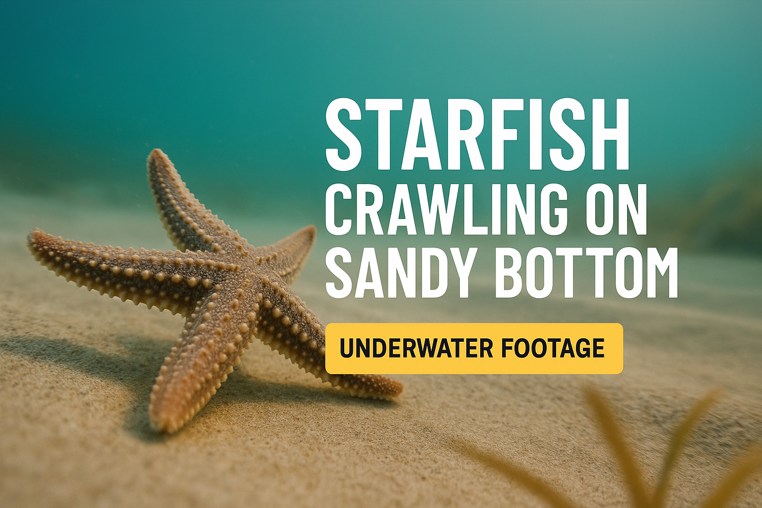 Starfish Crawling on Sandy Ocean Floor with Text Overlay