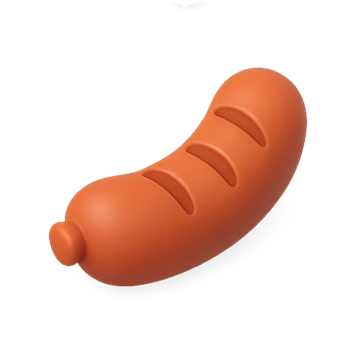 A detailed 3D rendering of a sausage, featuring a smooth texture and realistic color. Ideal for food-related graphics, packaging design, or culinary presentations.