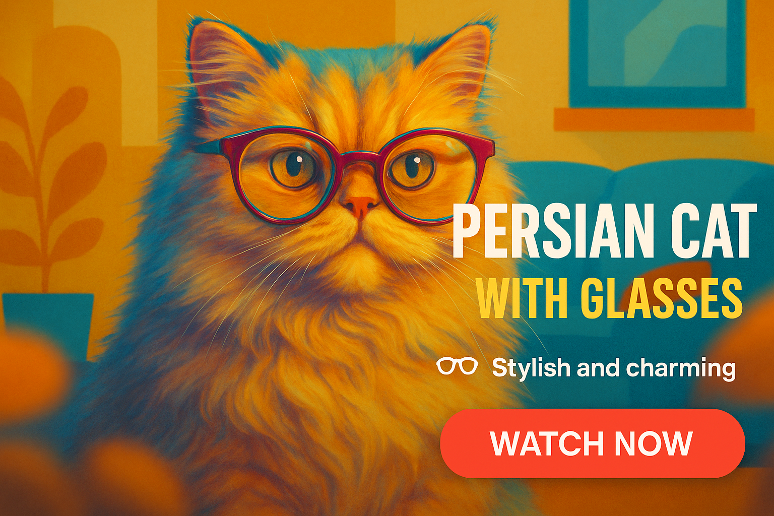 /Collection: /by davooda/Type: PNG/A vibrant and whimsical illustration of a Persian cat wearing glasses, perfect for engaging social media posts or fun advertisements. The colorful design captures attention and adds a playful touch.