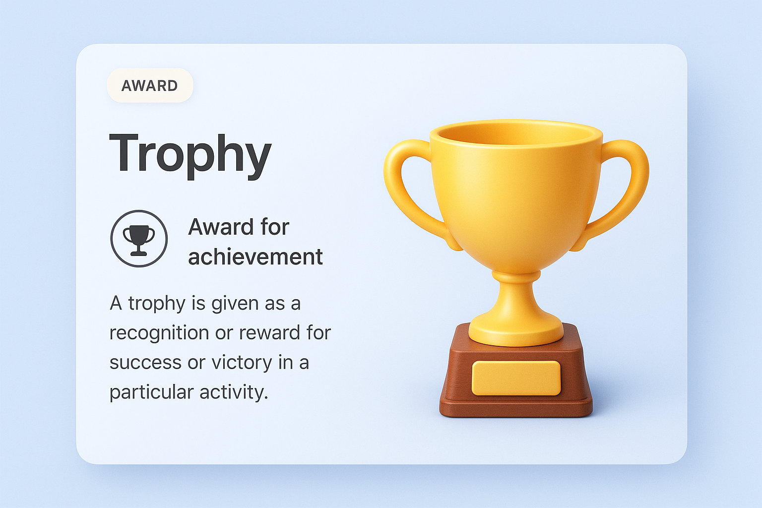A vibrant 3D trophy icon on a light gradient background, symbolizing achievement and success. Accompanied by descriptive text highlighting its purpose.