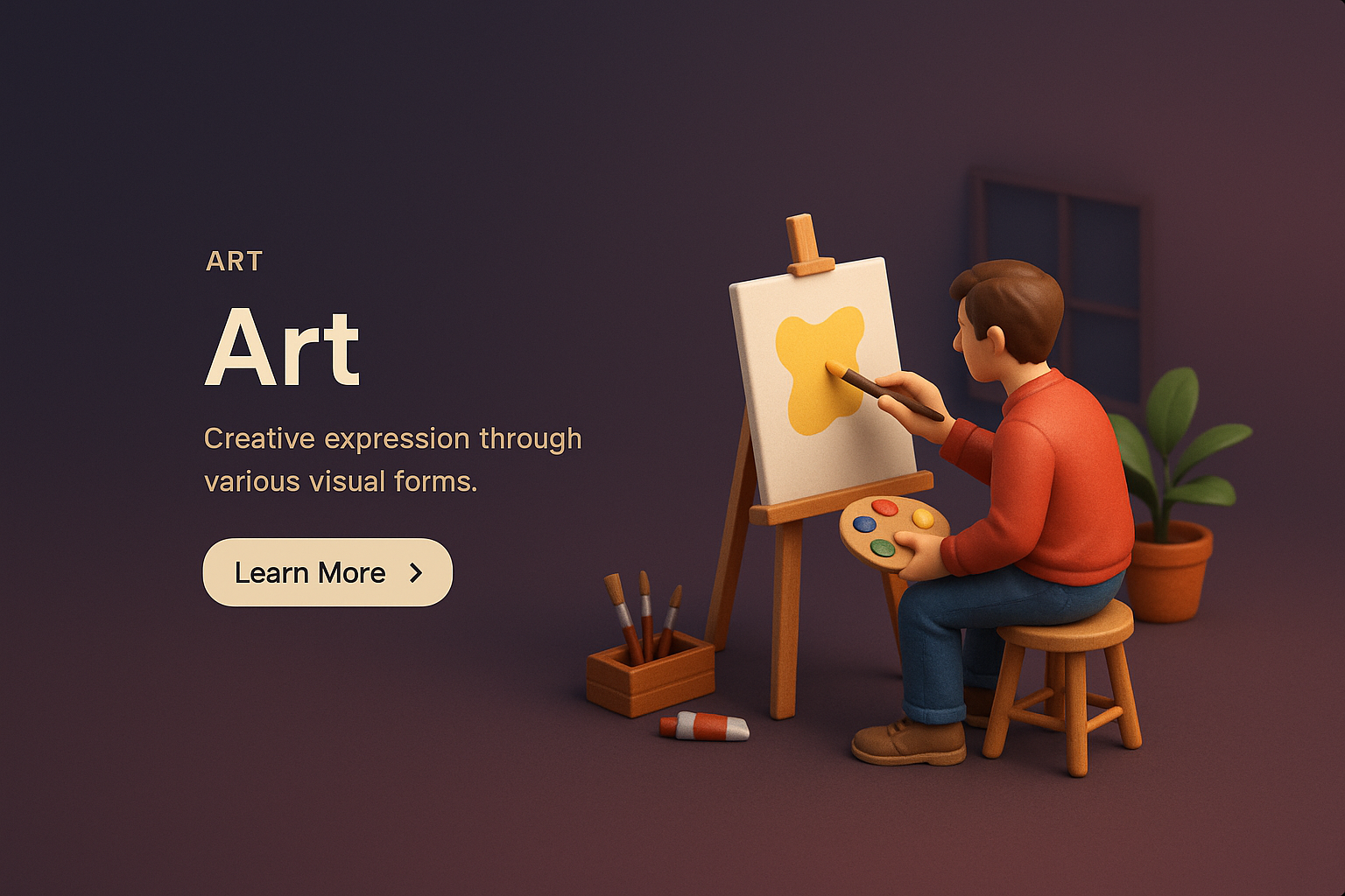 3D Scene of Drawing Tools and Artist in Realistic Style