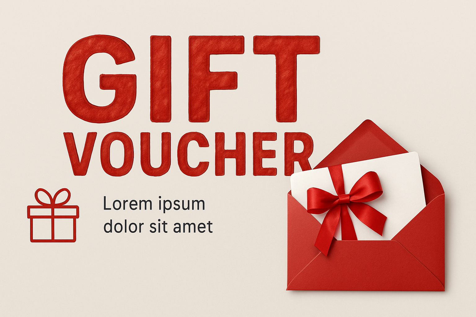 Stylish gift voucher graphic showcasing an elegant red envelope with a ribbon, ideal for promotional materials and e-commerce marketing.