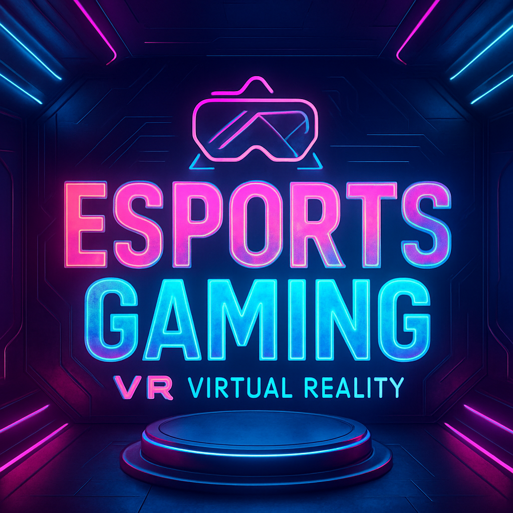Vibrant promotional graphic showcasing esports gaming with a virtual reality theme. The neon color palette and tech-inspired design elements make it ideal for gaming events or online platforms.