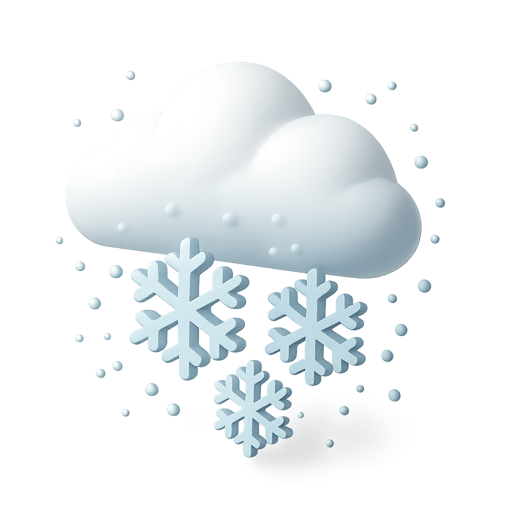 A stylized 3D representation of a blizzard scene featuring a fluffy cloud and three snowflakes, set against a soft gradient background. The design emphasizes depth and volume.