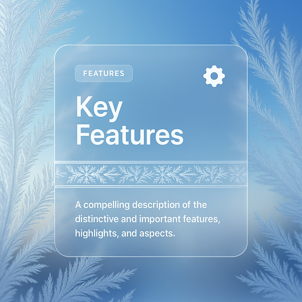/Collection: /by davooda/Type: PNG/An image showcasing intricate frost patterns formed on a window pane, set against a serene morning sky. The design features a semi-transparent overlay with text blocks highlighting key features.