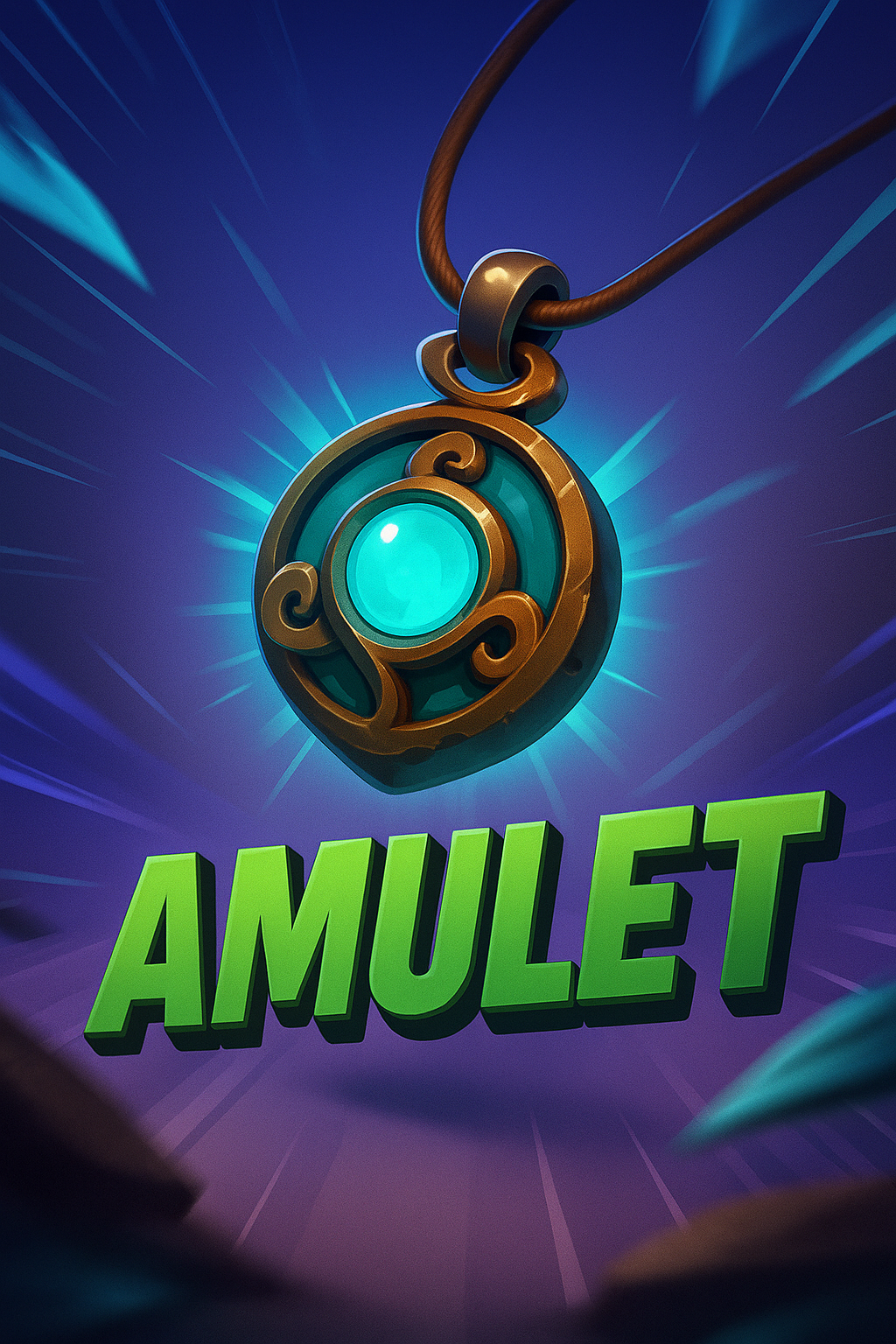 /Collection: /by davooda/Type: PNG/A vibrant illustration of an amulet featuring a glowing blue gem, surrounded by dynamic rays and bold text. The design employs a smooth gradient background and layered composition for depth.
