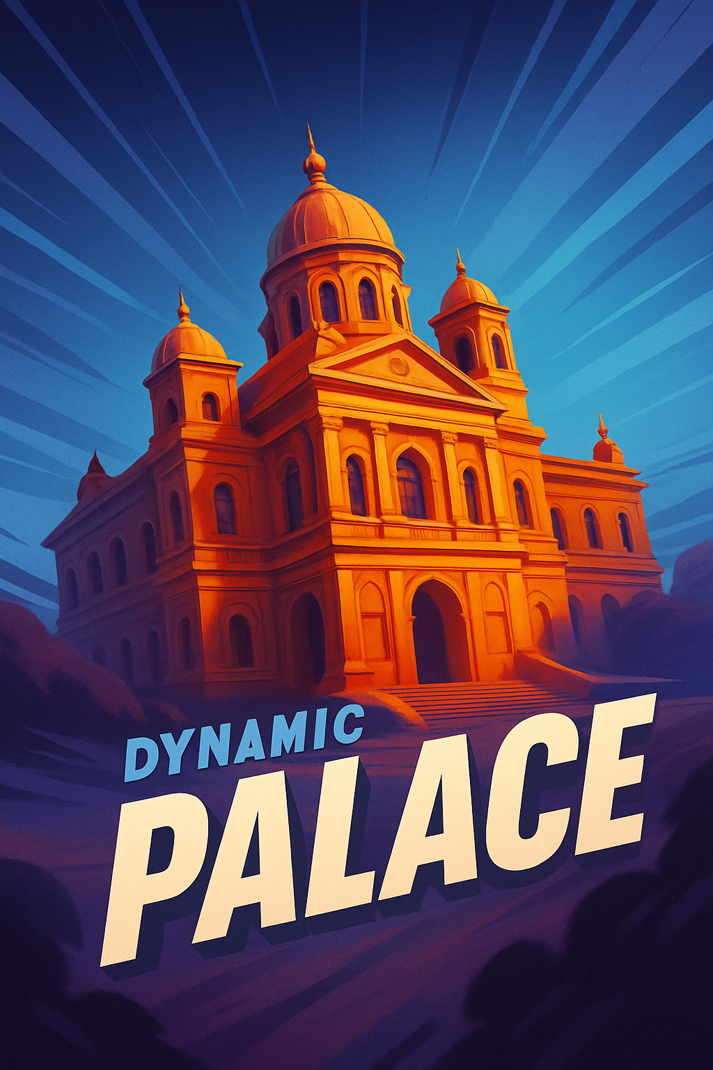 Vibrant and Dynamic Palace Illustration with Bold Design Elements