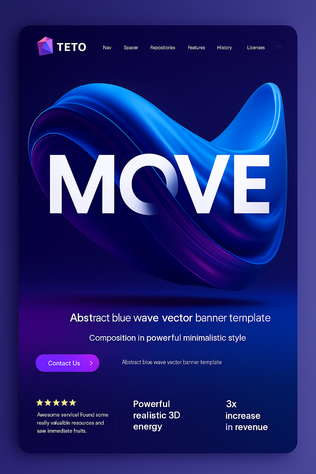 /Collection: /by davooda/Type: PNG/A striking modern landing page featuring an abstract blue wave design. The bold headline 'MOVE' captures attention, complemented by a sleek layout and vibrant color gradient.