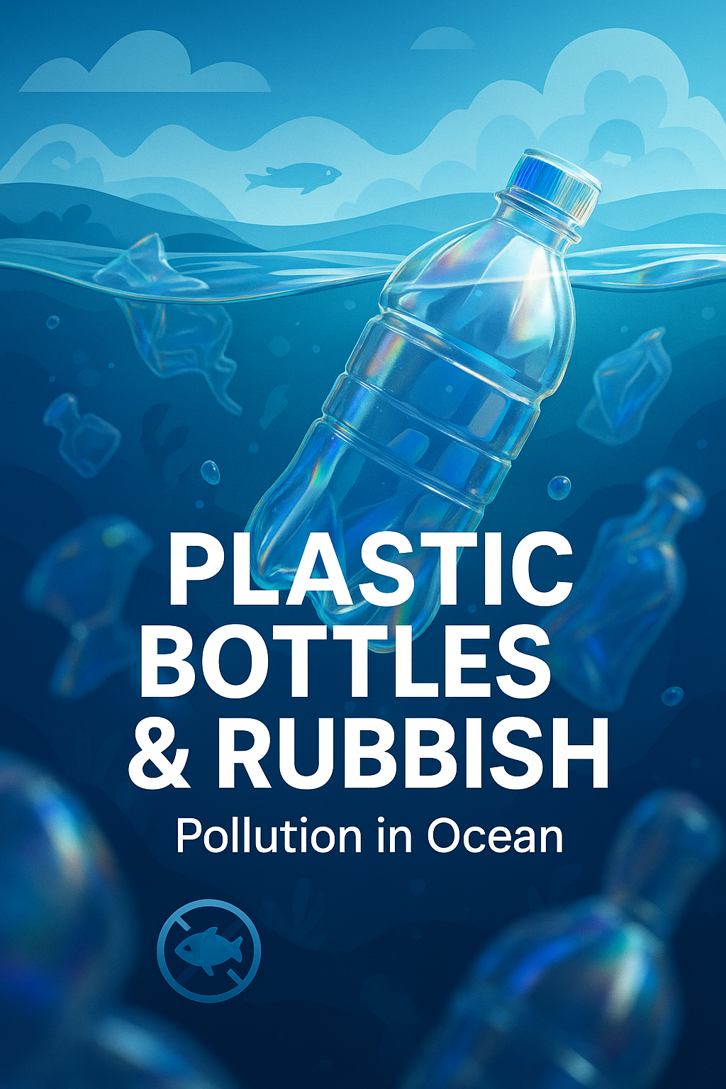 Illustrative Graphic on Ocean Pollution Featuring Plastic Bottles