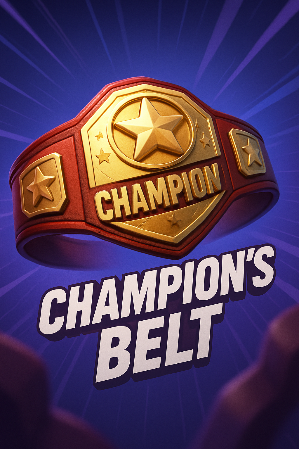 /Collection: /by davooda/Type: PNG/A visually striking 3D illustration of a champion's belt, featuring a bold title and dynamic rays emanating from the center, set against a smooth gradient background.