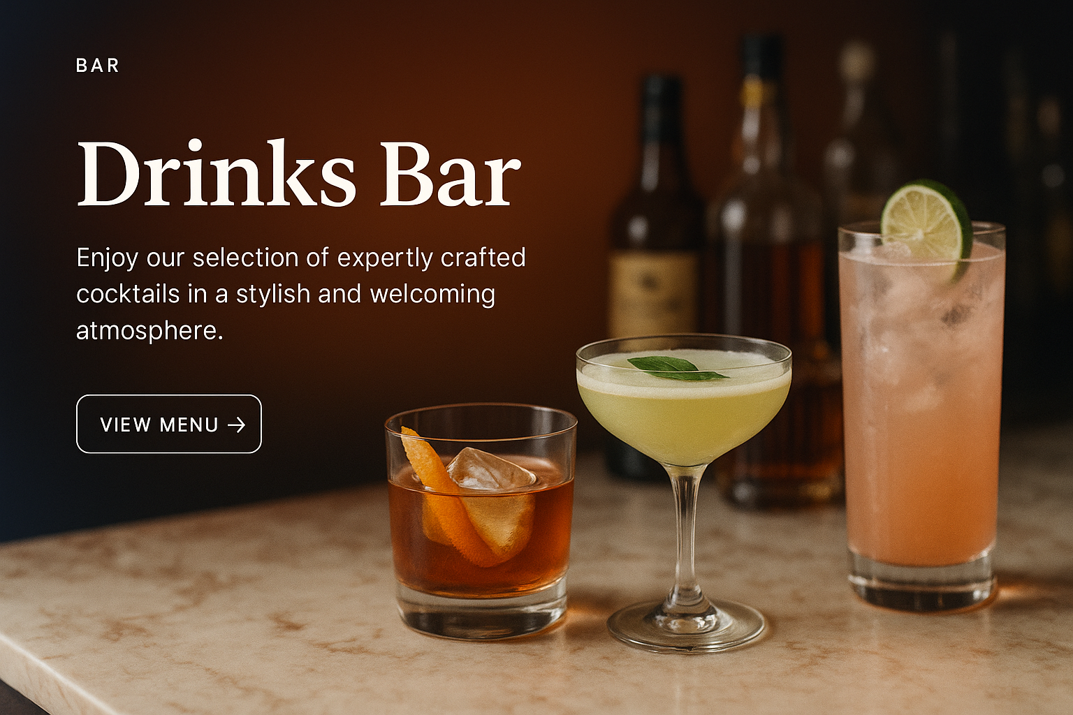 Stylish Drinks Bar Design with Cocktails and Warm Atmosphere
