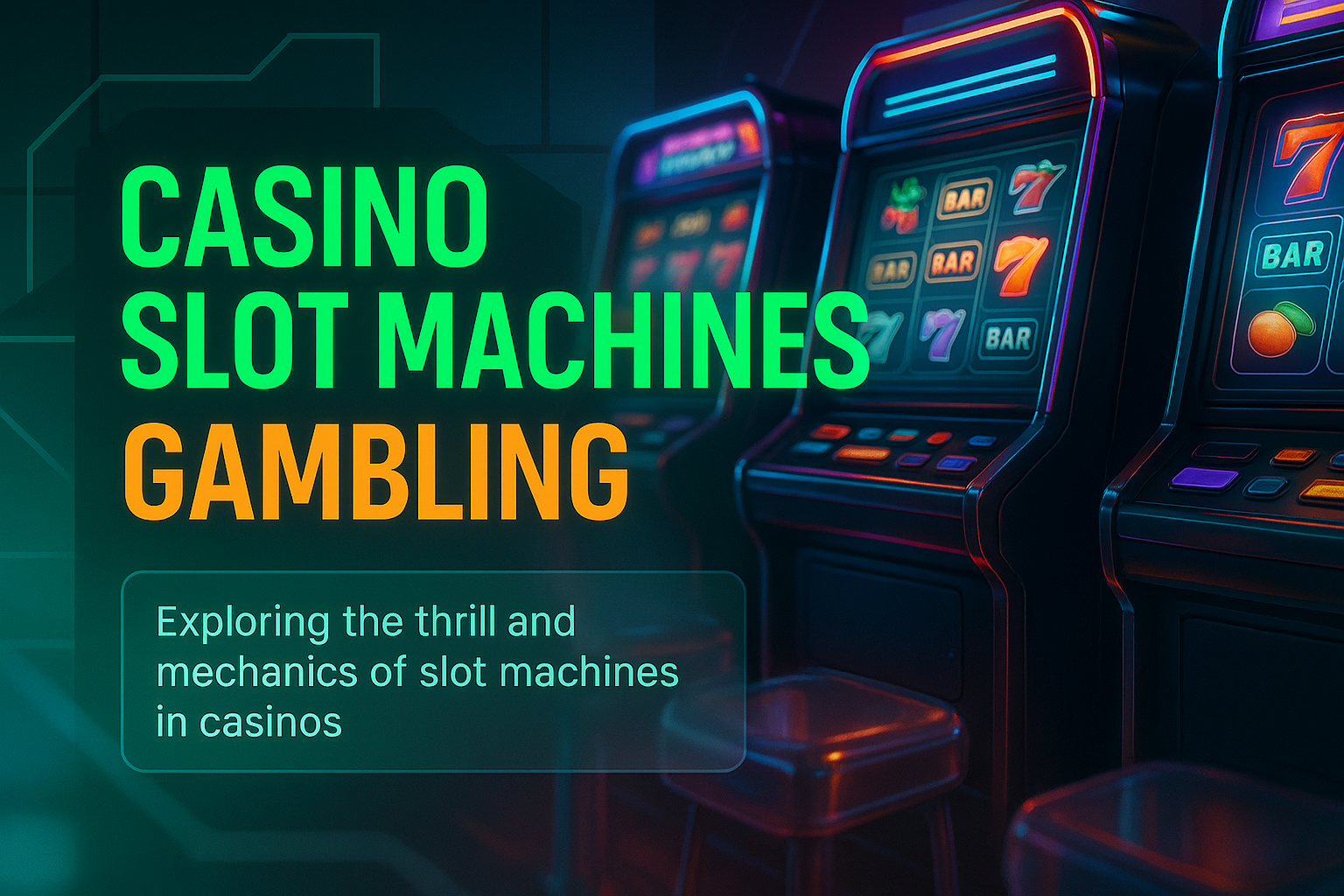 Dynamic graphic showcasing slot machines in a casino setting, emphasizing themes of gambling and excitement. Ideal for gaming-related content.