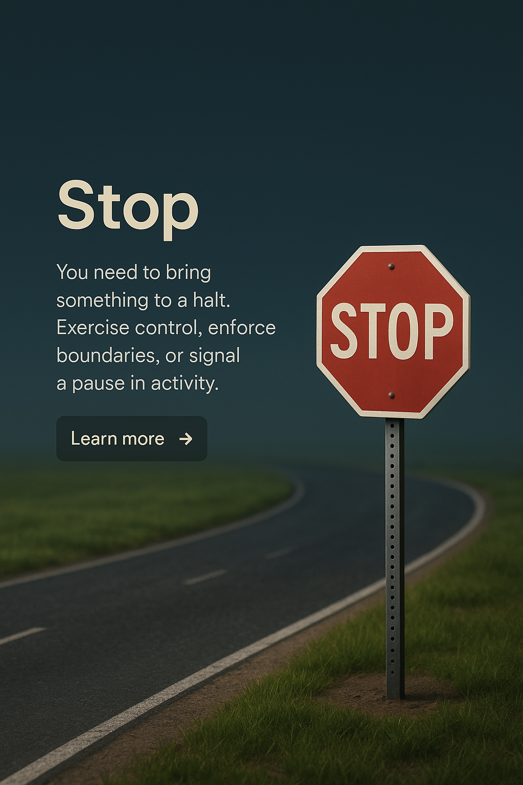 /Collection: /by davooda/Type: PNG/A detailed 3D scene showing a stop sign on a road surrounded by grass, set against a dark gradient background. Text elements are designed for clarity and emphasis.