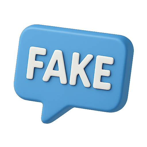 Stylized 3D speech bubble graphic featuring the word 'Fake' in bold, contrasting colors. Ideal for discussions on misinformation or social media themes.