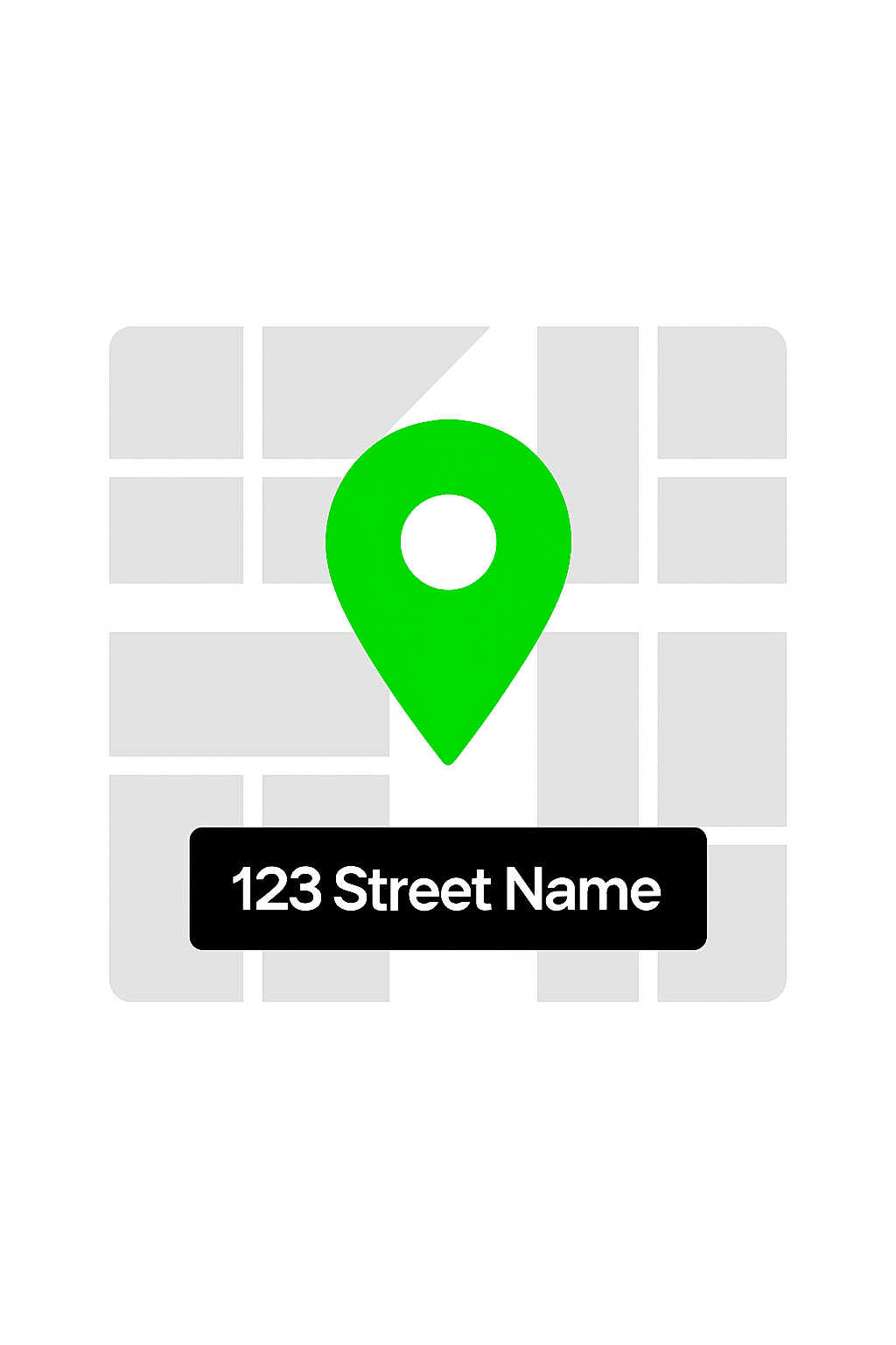 Stylized graphic representing a map with a prominent location pointer and address label, ideal for navigation apps or location-based services.