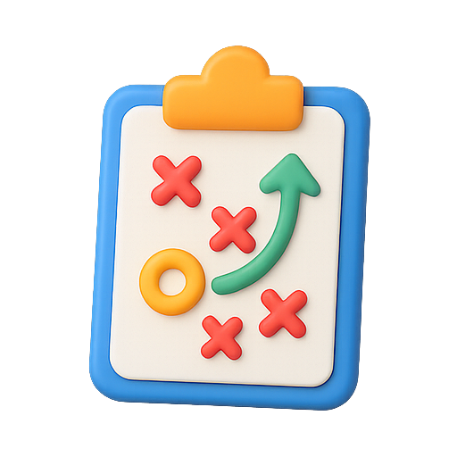 3D rendered clipboard icon featuring a playful strategy plan with arrows and markings, ideal for educational or coaching applications.