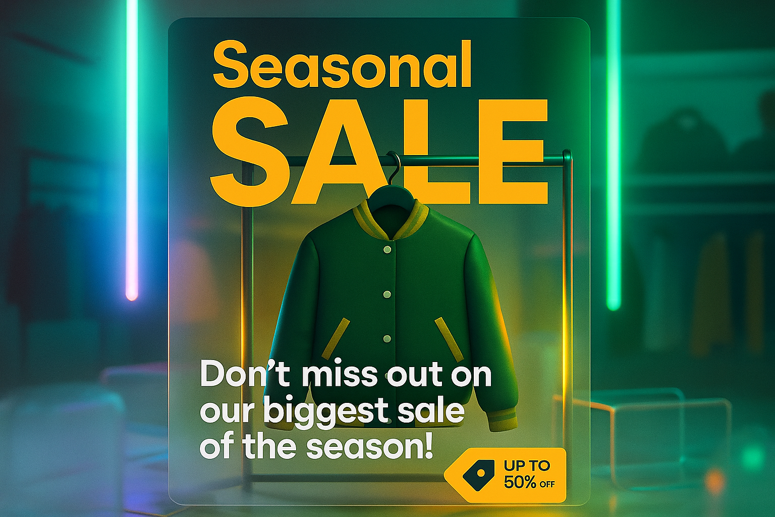 Vibrant Neon Seasonal Sale Poster with Jacket Display