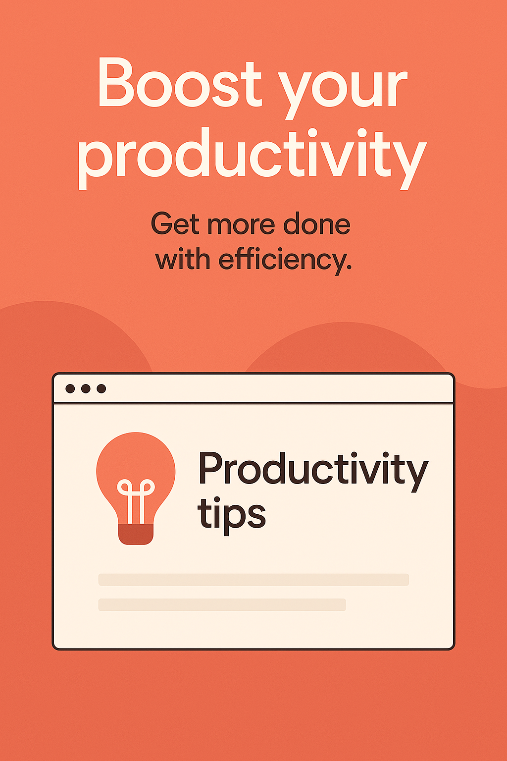 A vibrant motivational graphic designed to promote productivity tips, featuring a light bulb icon and modern typography, ideal for social media or blog use.