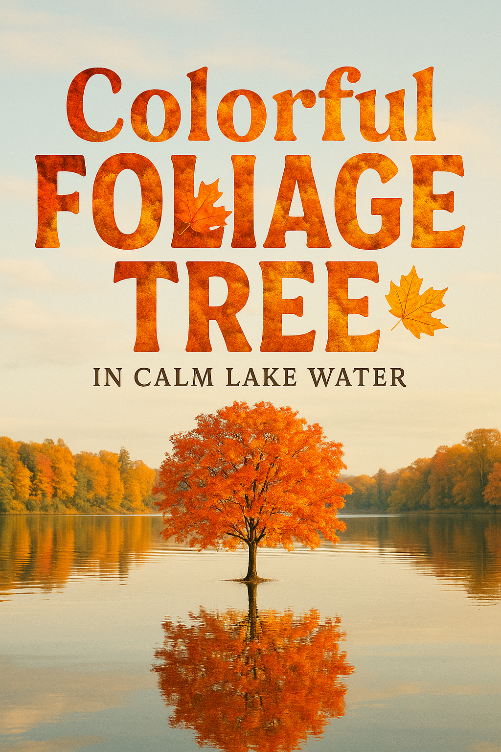 Stunning autumn landscape featuring a vibrant tree with colorful foliage reflected in calm lake water, ideal for nature-themed marketing or decor.