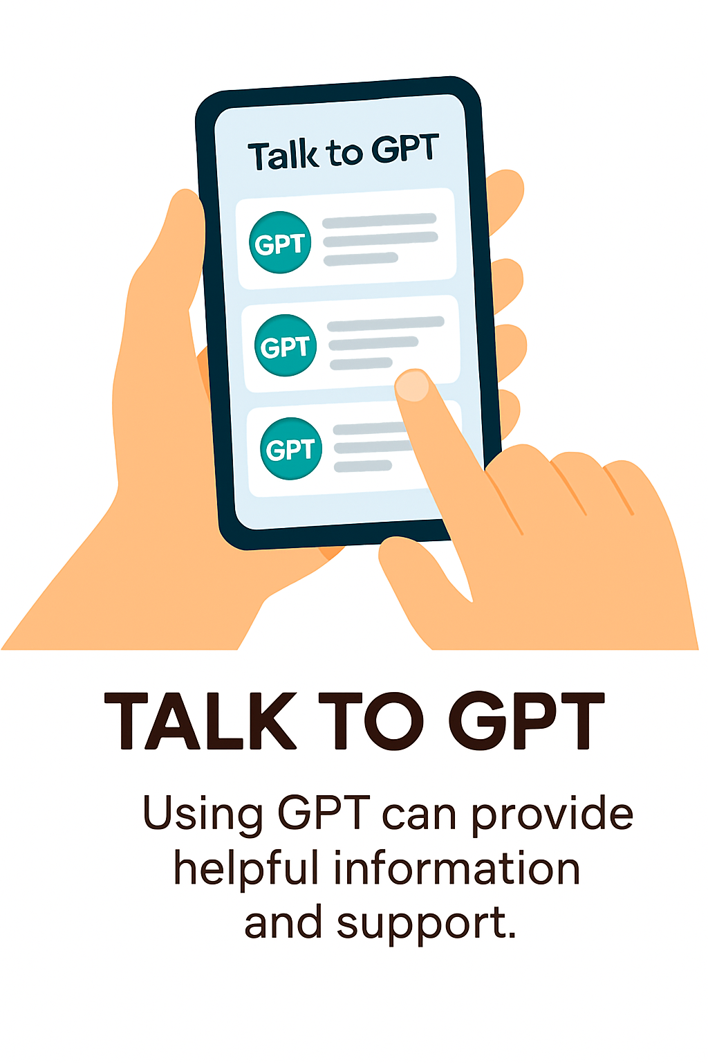Illustrative mobile app interface showcasing user interaction with GPT features. The design is simple and engaging, ideal for tech-related presentations or marketing.