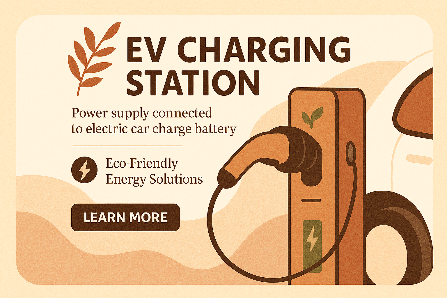/Collection: /by davooda/Type: PNG/A visually appealing illustration of an electric vehicle charging station. Features eco-friendly energy solutions with a clean design and engaging layout, emphasizing sustainability.