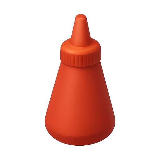 A simple and modern ketchup bottle featuring a conical shape and a bright red color, perfect for product displays or culinary themes.