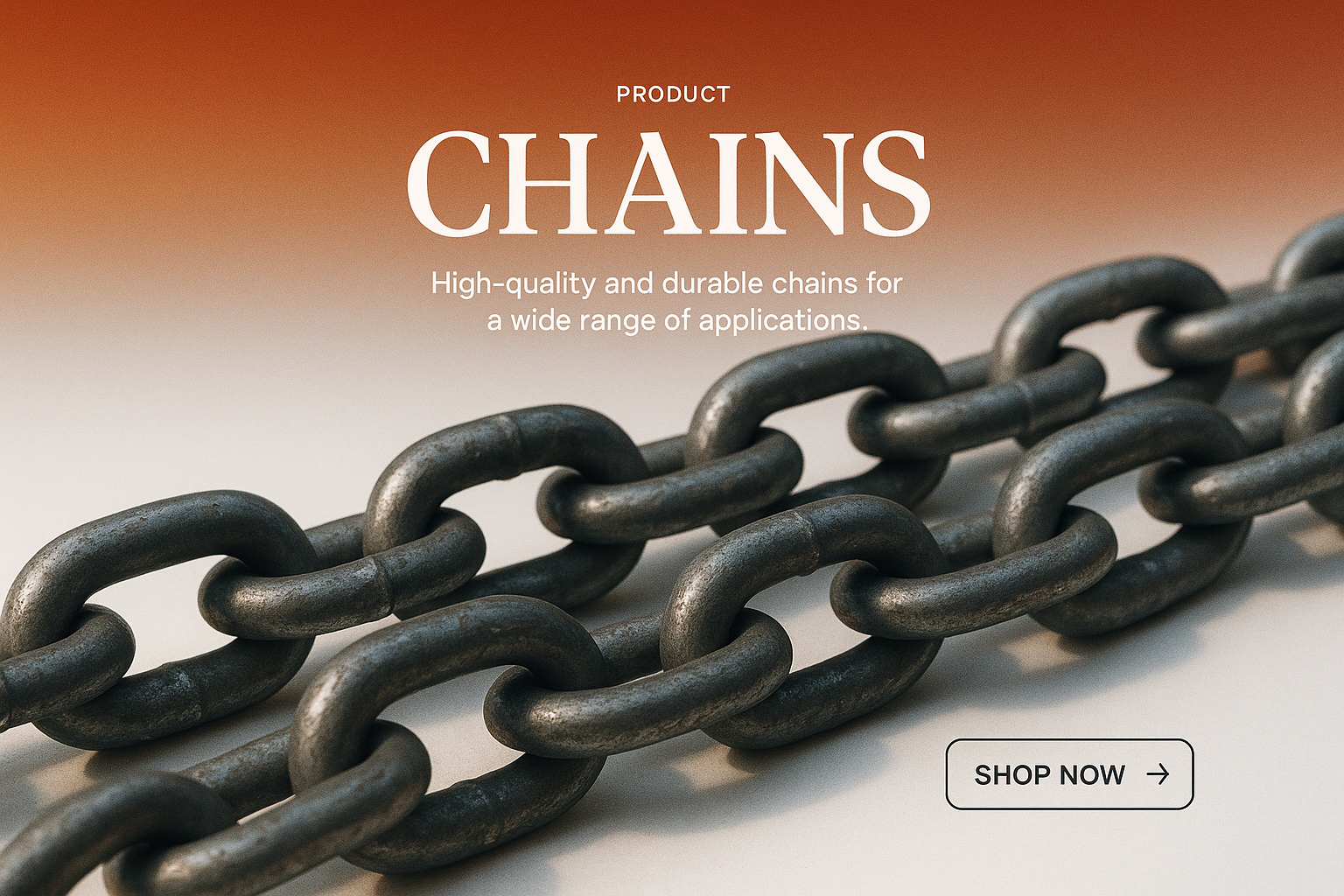 /Collection: /by davooda/Type: PNG/This image features a close-up of durable chains against a gradient background, highlighting their quality. The design includes a product label, a title, a brief description, and a call-to-action button.