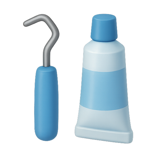 /Collection: /by davooda/Type: PNG/A vector-style illustration featuring a dental tool and a toothpaste tube, designed with soft colors and rounded shapes, suitable for educational or health-related content.