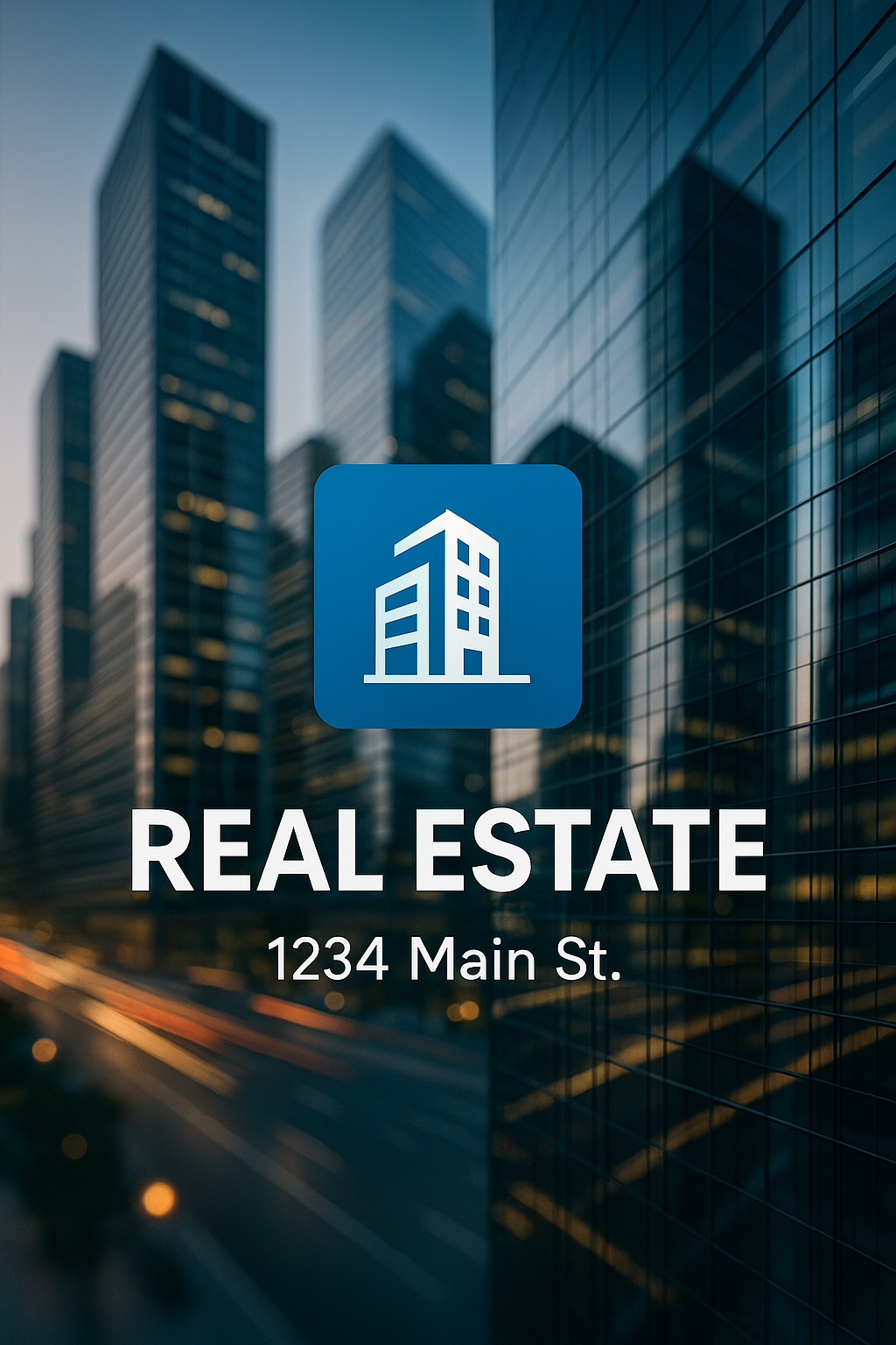 Modern Real Estate Promotional Graphic Featuring Urban Skyline