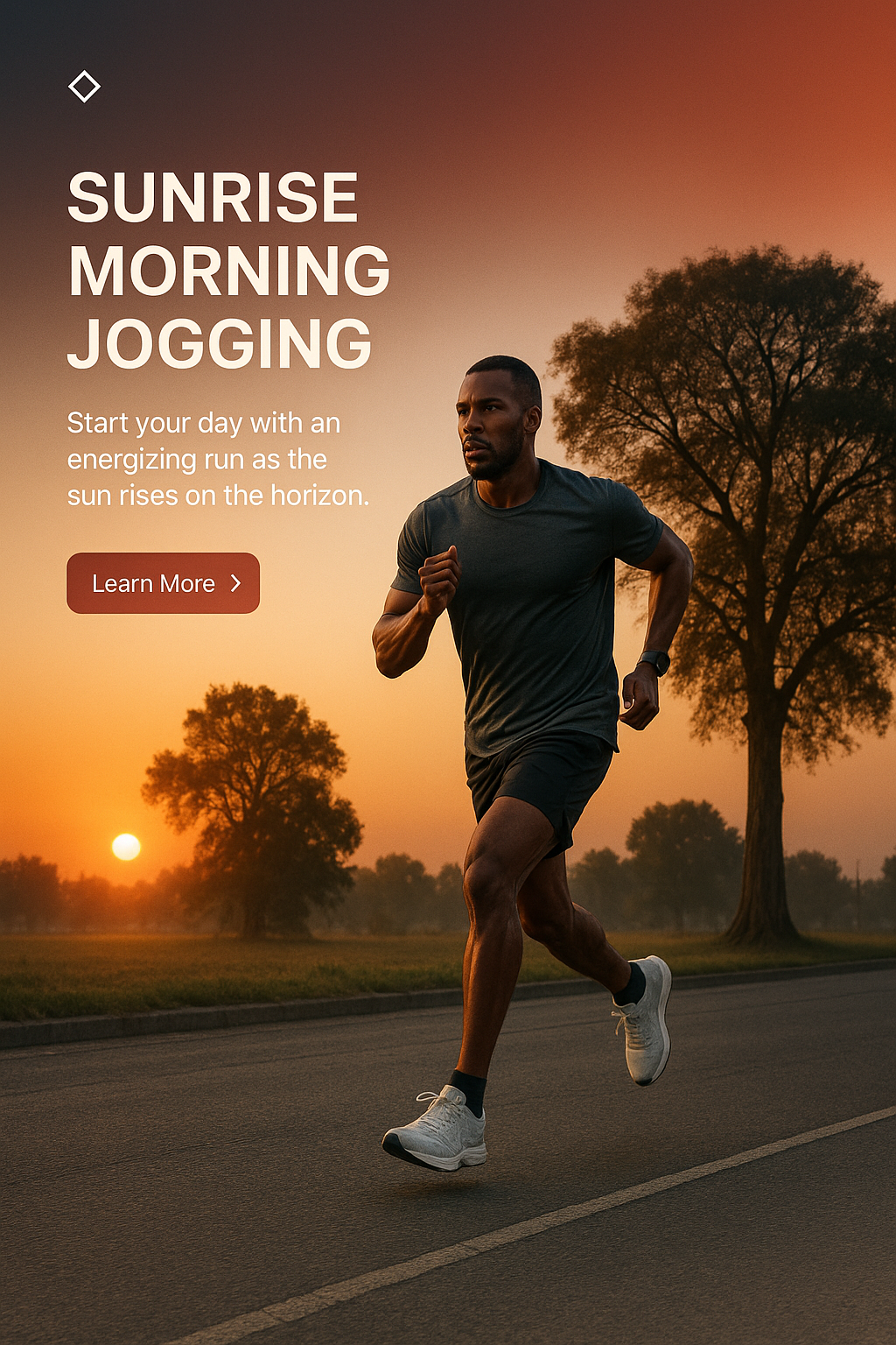 Dynamic Sunrise Jogging Scene with Bold Typography