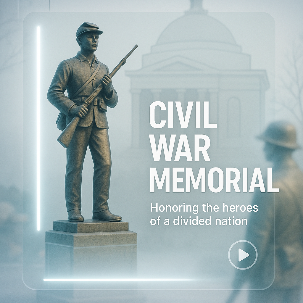 A solemn image of a Civil War memorial statue, emphasizing honor and remembrance. The design features a modern aesthetic with a focus on historical significance, suitable for educational or commemorative contexts.