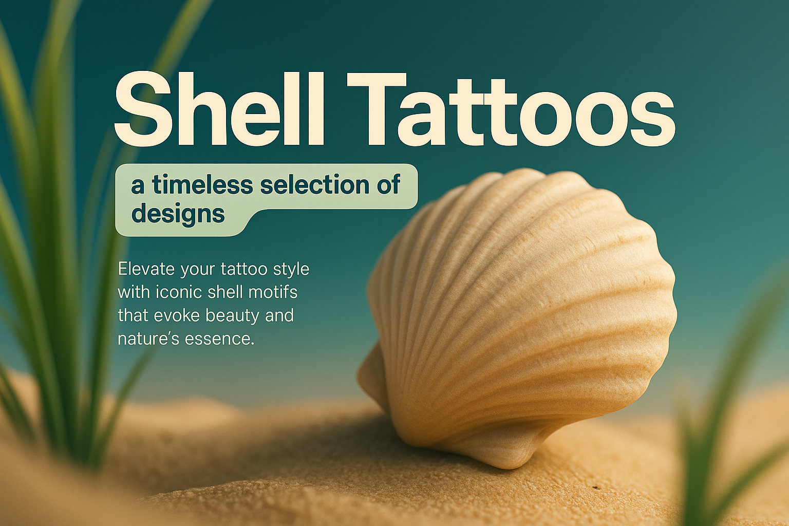Stylish 3D Shell Tattoo Illustration with Text Elements