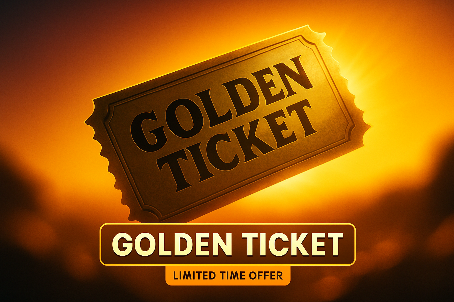 /Collection: /by davooda/Type: PNG/This image features a stylized golden ticket against a glowing background, ideal for promotional use. It conveys excitement and exclusivity, suitable for marketing campaigns.