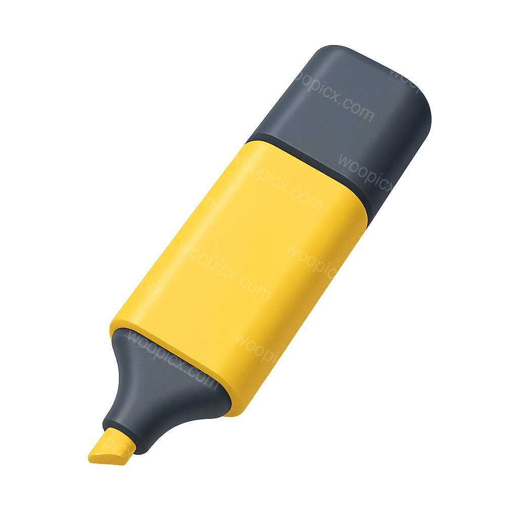 /Premium/Collection: /by davooda/Type: PNG/This image features a 3D rendered highlighter with a cap, shown in a three-quarter isometric view. The highlighter is primarily yellow with a dark gray cap, showcasing a volumetric design against a transparent background.