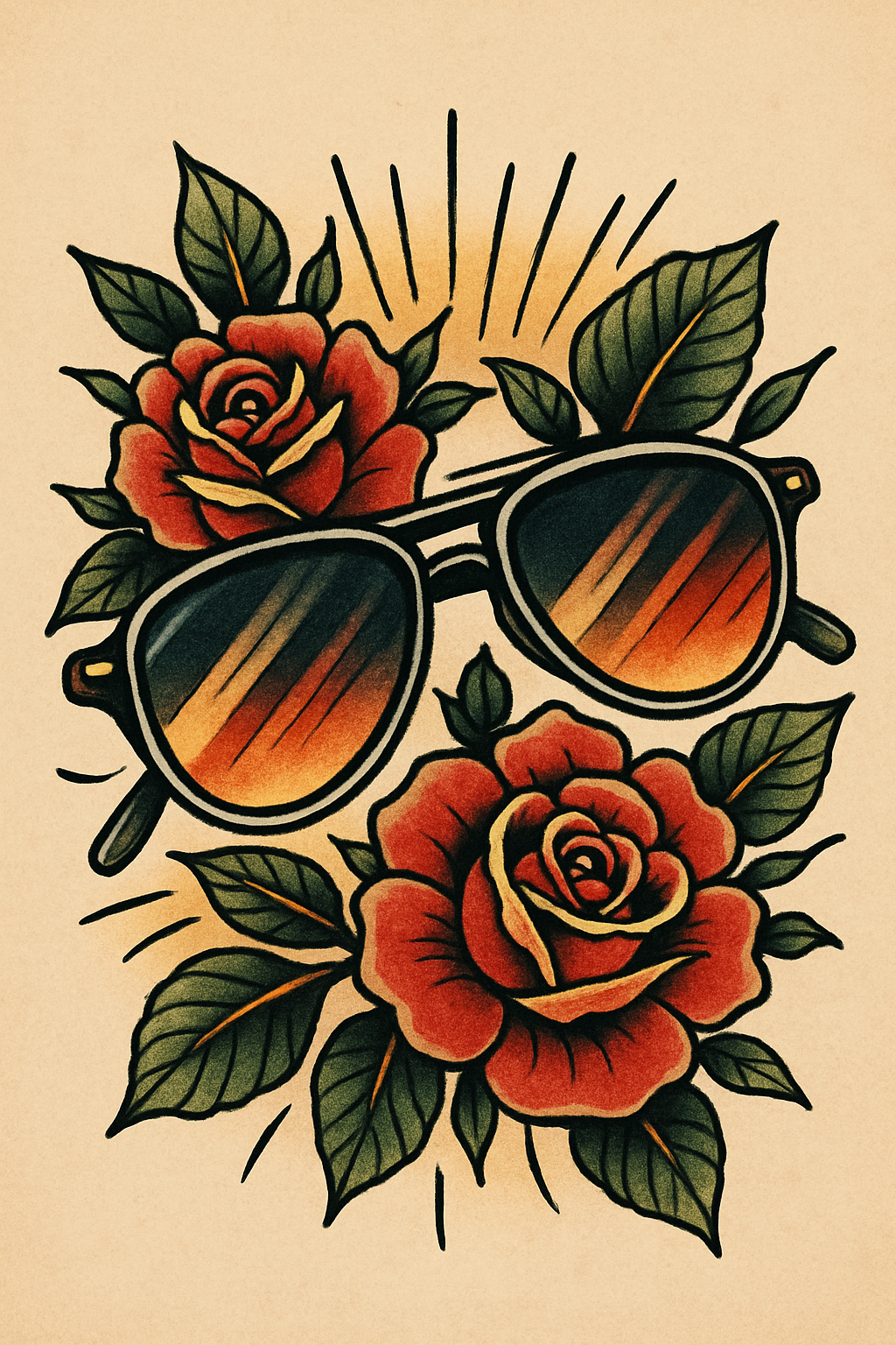 Vintage Tattoo Style Artwork Featuring Sunglasses and Roses