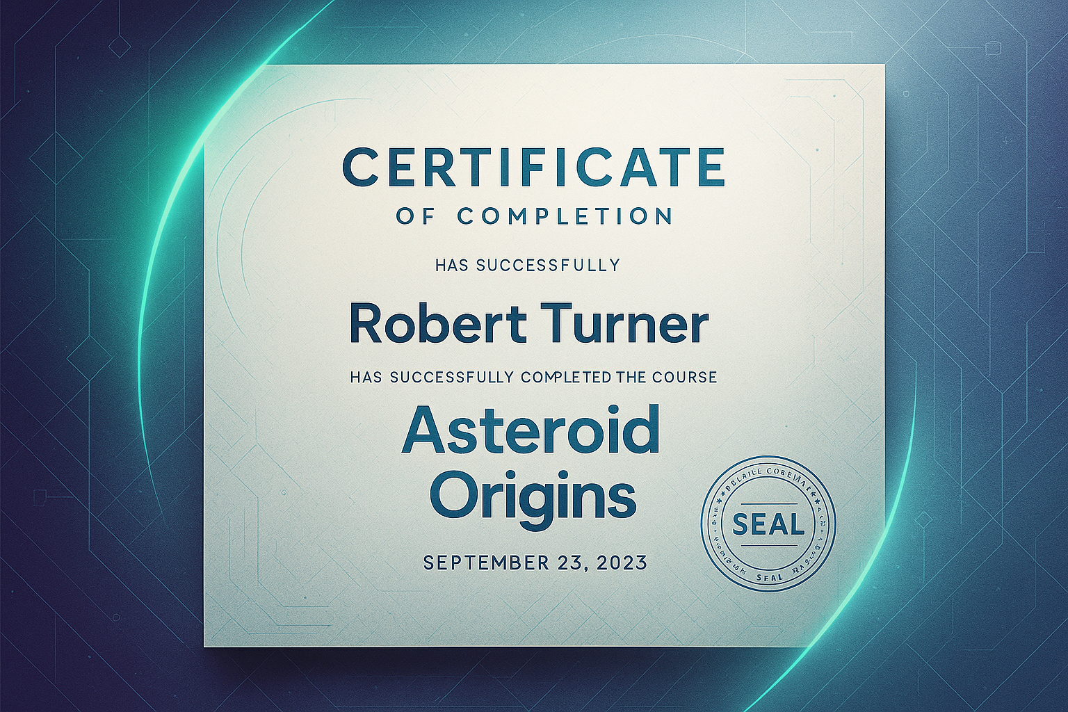 Professional certificate design showcasing completion of a course with modern typography and a sleek background. Ideal for educational achievements.