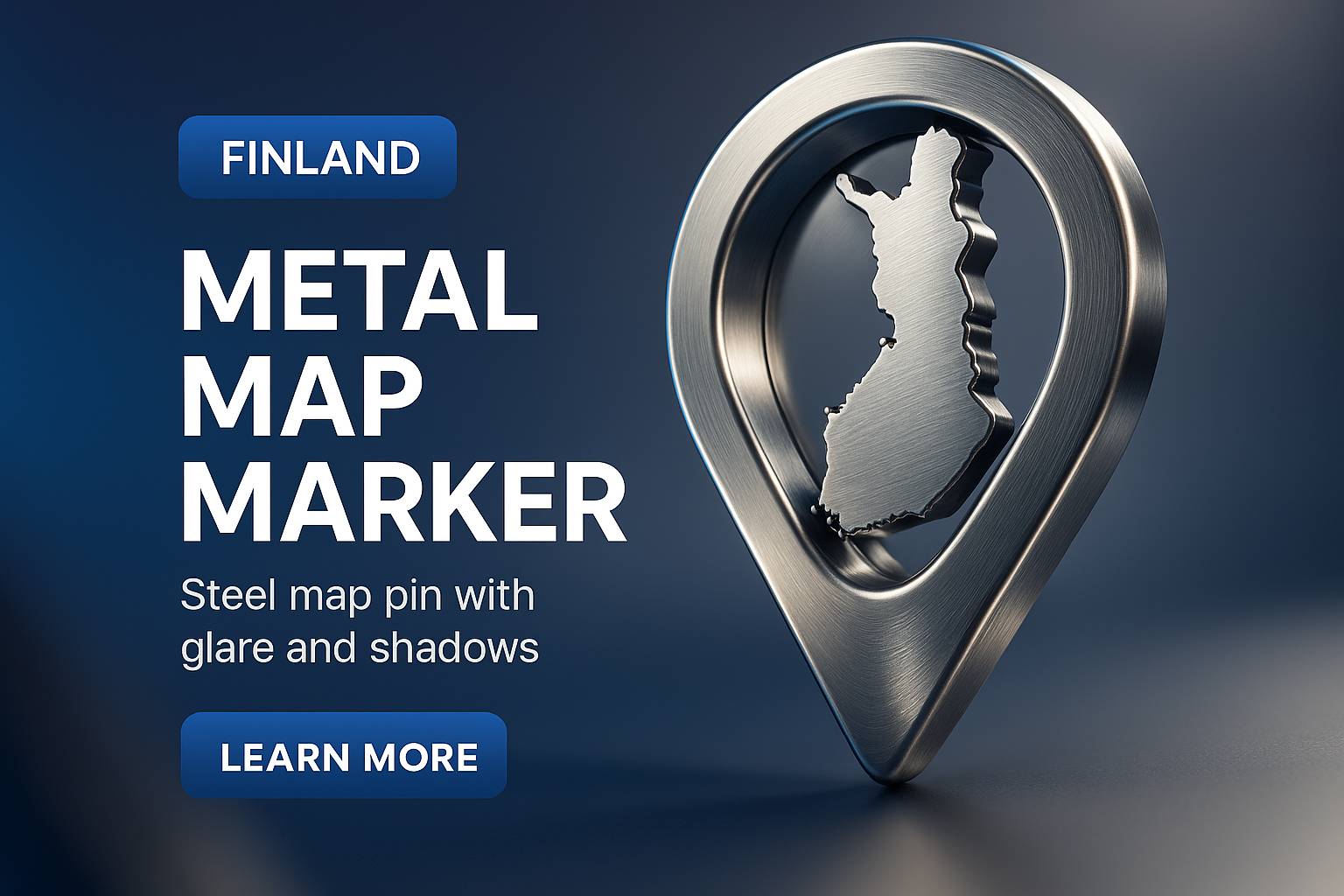 3D Metal Map Marker with Finland Outline