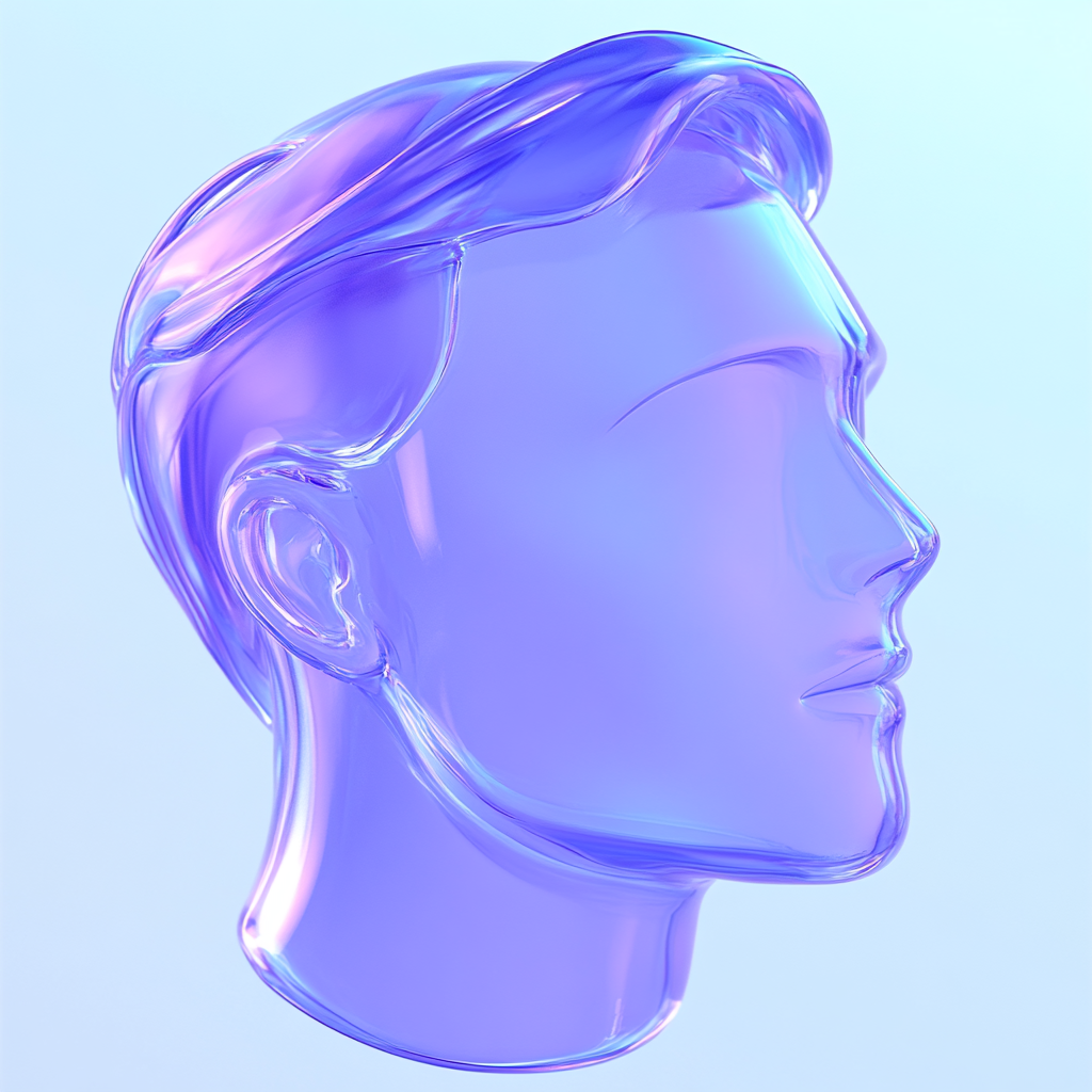 Stylized 3D Glass Head Sculpture in Purple Hue