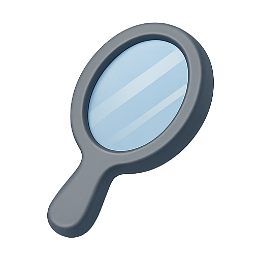 A modern, stylized graphic of a handheld mirror featuring a sleek design and smooth finish, ideal for beauty or personal care related content.