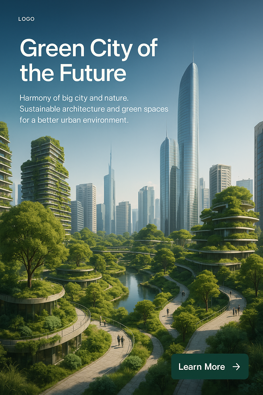 Eco-Futuristic Cityscape Promotional Graphic