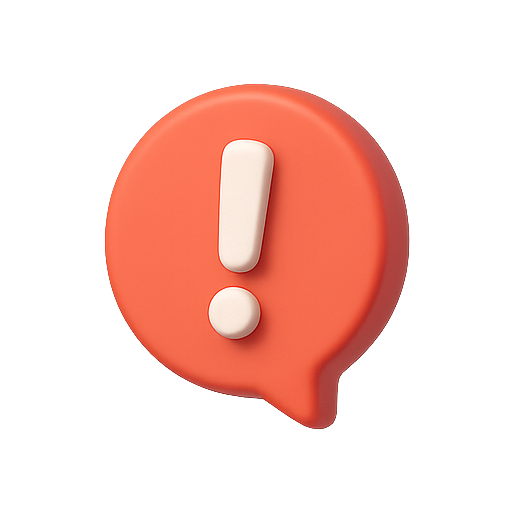 Stylized 3D icon featuring an exclamation mark inside a speech bubble, ideal for notifications or alert messages in digital applications.